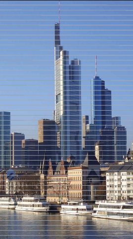 Es ist ganz einfach die spezielle, treppenförmige Lamellen zu verstehen. Grundsätzlich stehen die Lamellen immer waagrecht, damit man das natürliche Licht, die Natur und die Umgebung immer sieht. Damit geht eine grosse Motivation der Arbeitenden in den Räumen einher. Das versterht man sofort beim Gedanken an geschlossene Fenstern mit Neon- oder Halogenlicht.
